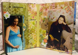 Это был этап №3, когда нужно было объединять фон из разной бумаги с помощью штампов. Не знаю, насколько я справилась с заданием в этот раз, но разворот мне кажется намного удачнее.