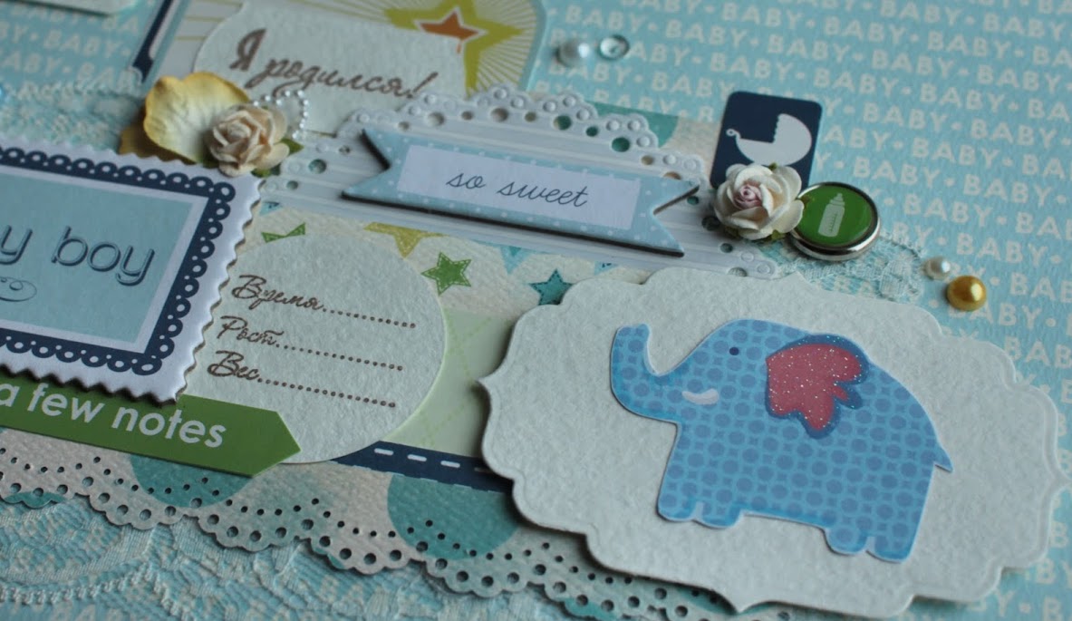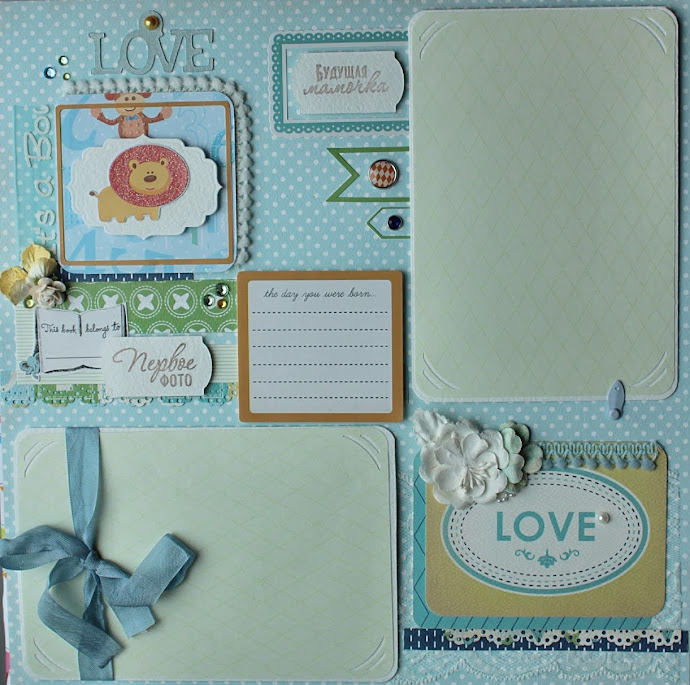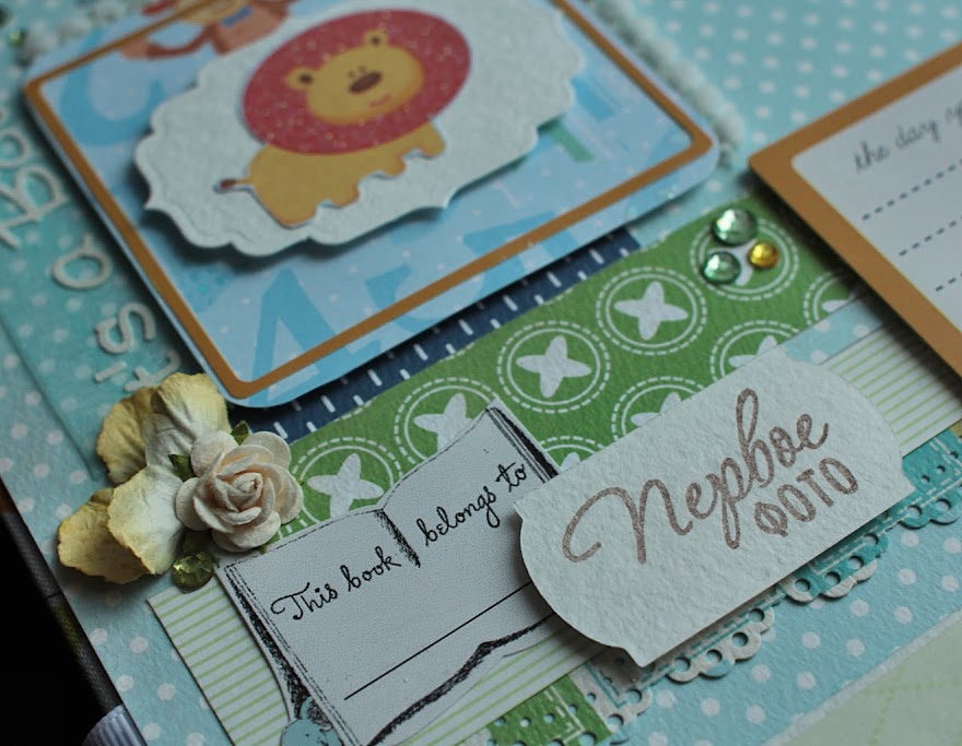 Такие забавные зверята получились. Я как-то давно показывала один разворот, сделанный как раз из бумаги с этими звериками. Так вот, я не ожидала, насколько интересно будут смотреться вырезанные фигурки, да еще в сочетании с бумагой КартаБелла.