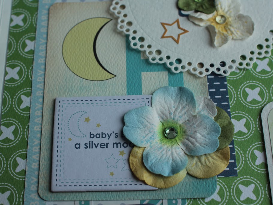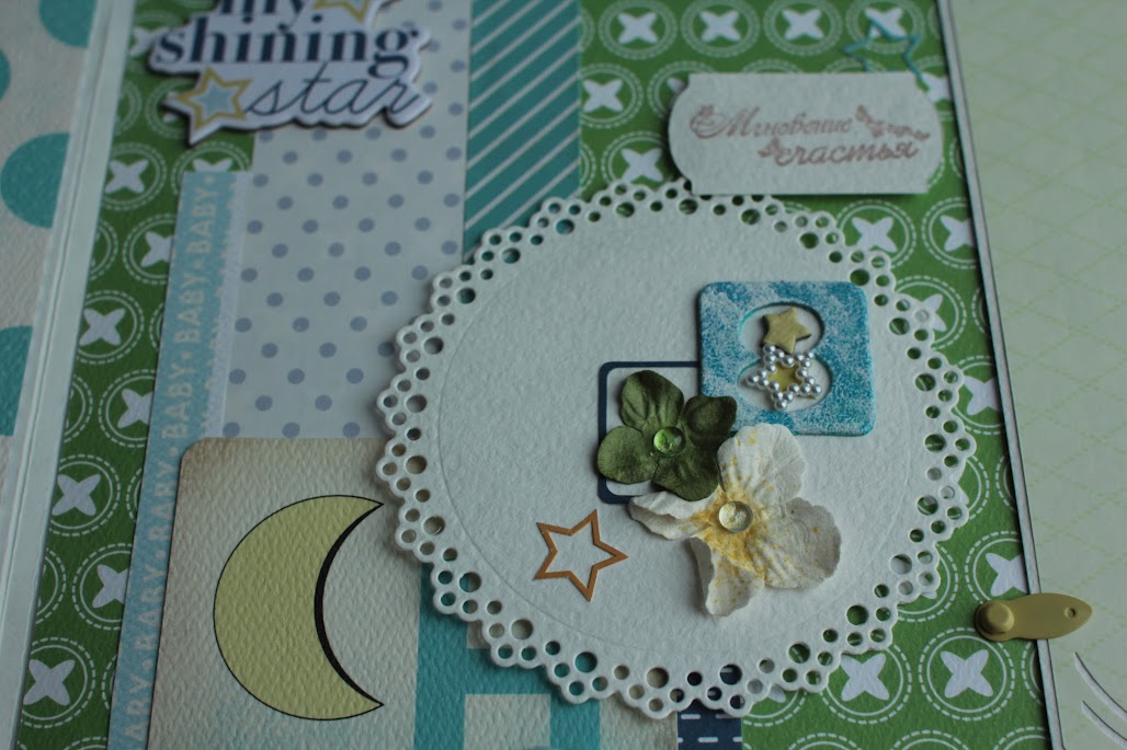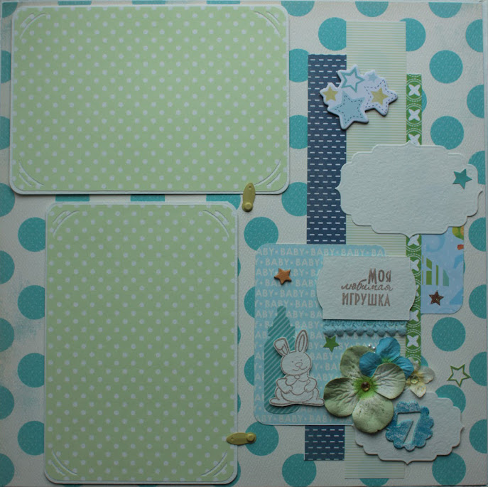 Разворот очень простой, не перегруженный (как все странички в этом альбоме, сделанные после преодоления мною себя же) и очень нравится мне по цветовому наполнению. Мне кажется он довольно спокойным и нежным. И я рада этому, ведь разворот про счастье - когда малыш наконец-то уснул :) Вот что такое "Моменты радости" :)))